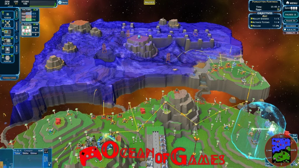- Economic and Military Strategy: Players must build an economic base with energy and mined resources, assemble forces, and strategically battle the Creeper, taking advantage of high ground for better sight and range.