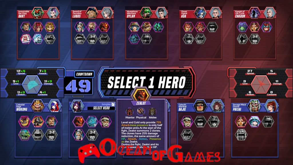 - Customization: The game allows you to create and customize your team name, logo, and draft heroes from over 50 available options, creating a unique team identity.