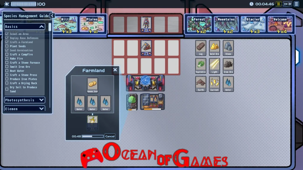 – **Exploration and Resources:** Besides basic activities like planting, logging, mining, refining, and building, you will encounter emotional manifestations, elemental entities, and machine creatures. Send your monsters to explore diverse terrains and collect hundreds of resource cards to increase your chances of victory.