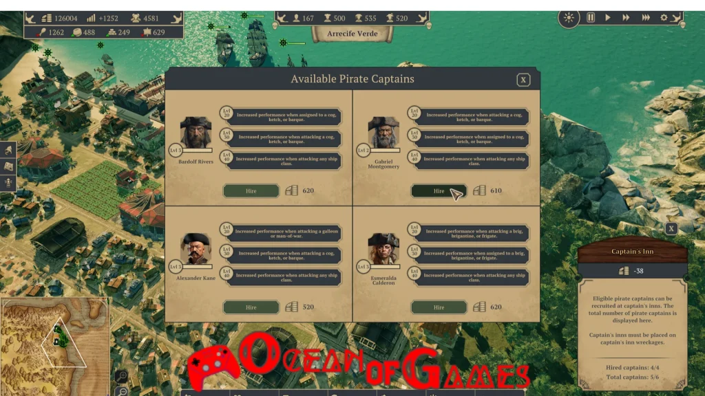 - Real-Time Naval Battles: Command a fleet of ships in real-time strategic combat, engage with merchant vessels, buccaneers, and powerful ships of the line using a tactical map for planning raids.