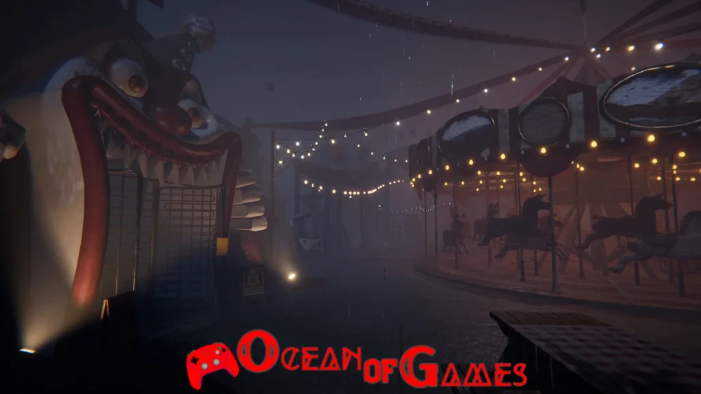 In REVEIL, you enter a detailed world where reality and illusion mix. The setting is inspired by a 1960s circus but soon becomes surreal.