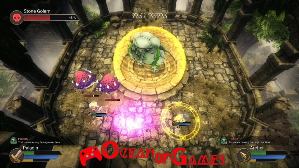- Dual Character Control: Players control two characters, the Paladin and the Archer, simultaneously in real-time using intuitive controls.