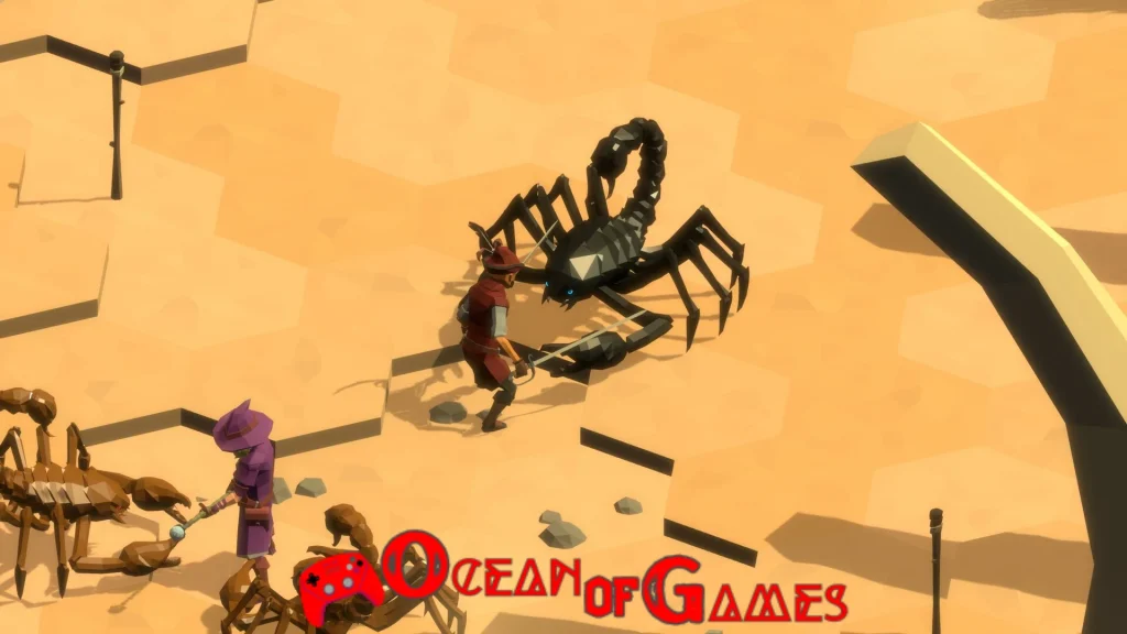 - Hex-Based Battlefields: Positioning is key with battle shrines, exploding barrels, and movable crates.