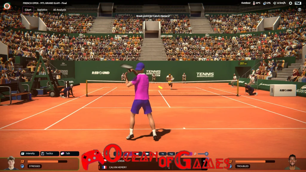 In Tennis Manager, strategic management is key. Keep your finances stable, negotiate contracts wisely, and invest in your academy’s growth to meet both short-term and long-term goals. Impress the board with your smart decisions and set the standard with your unique training and management style. Show the Federation you’re the best choice for captain and lead the national team to glory. With a cutting-edge 3D engine, you can immerse yourself in the action and coach your players in real time during matches.