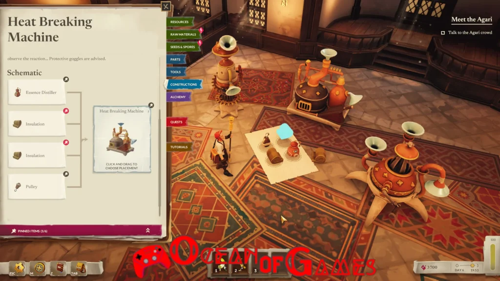 3. Workshop Crafting: Players build and enhance their alchemical workshop, including tools, machines, and furniture for both function and style.